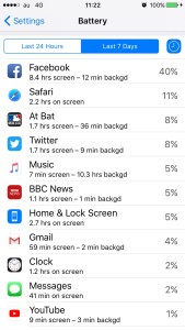 It was a little shocking to see that I was spending over 8 hours a week on FB on my iPhone. My train commute is about an hour and a half each way, and I go to campus four days a week. So basically I spent 2/3 of my train time looking at FB posts.