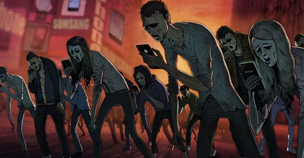 How NOT to look at their smartphone while zombie walking on a train platform or stairs.