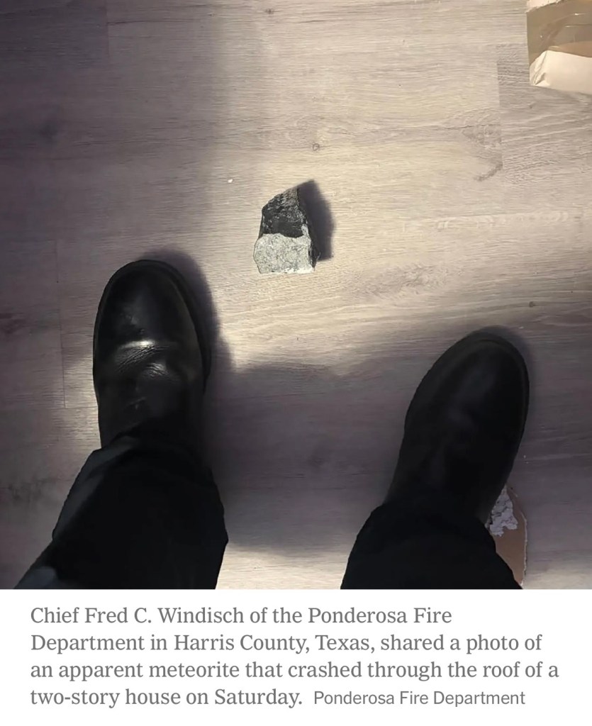 My favorite thing about the photo of the meteorite chunk: It was sent to the media from the Ponderosa Fire Department.